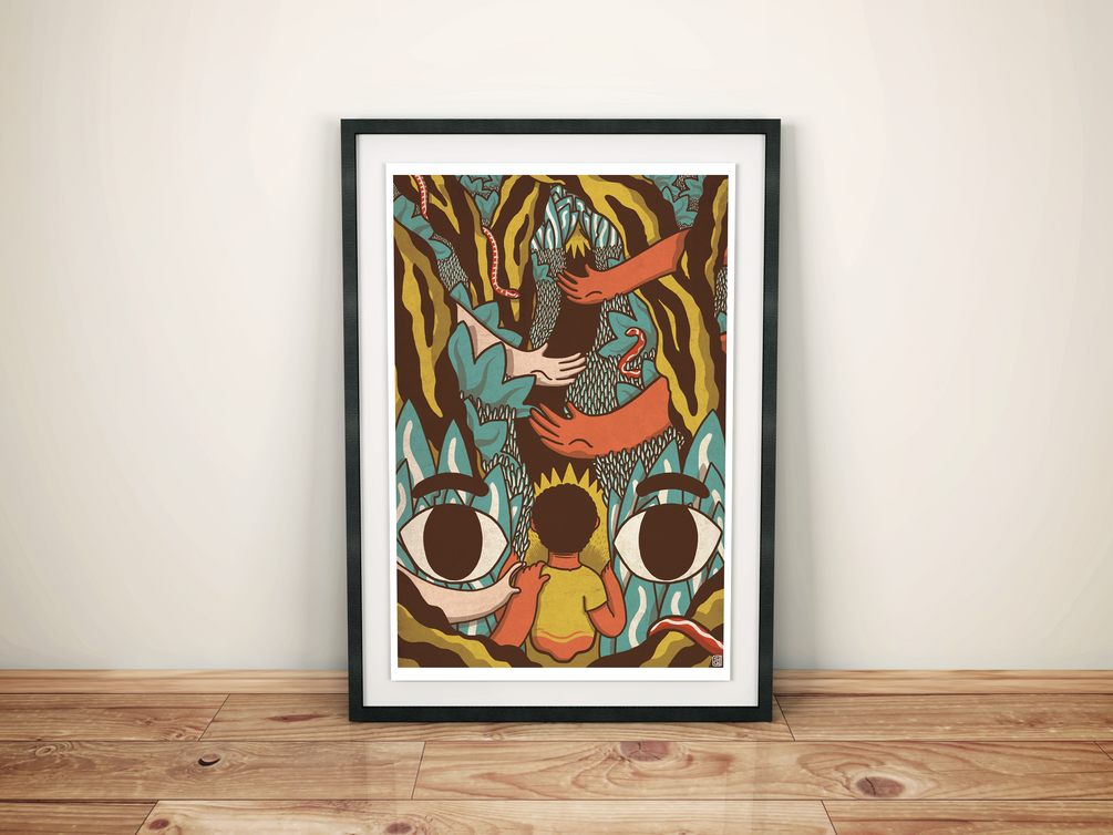 3 different illustrations (Baobab treeman - Road of life - Breastfeeding)