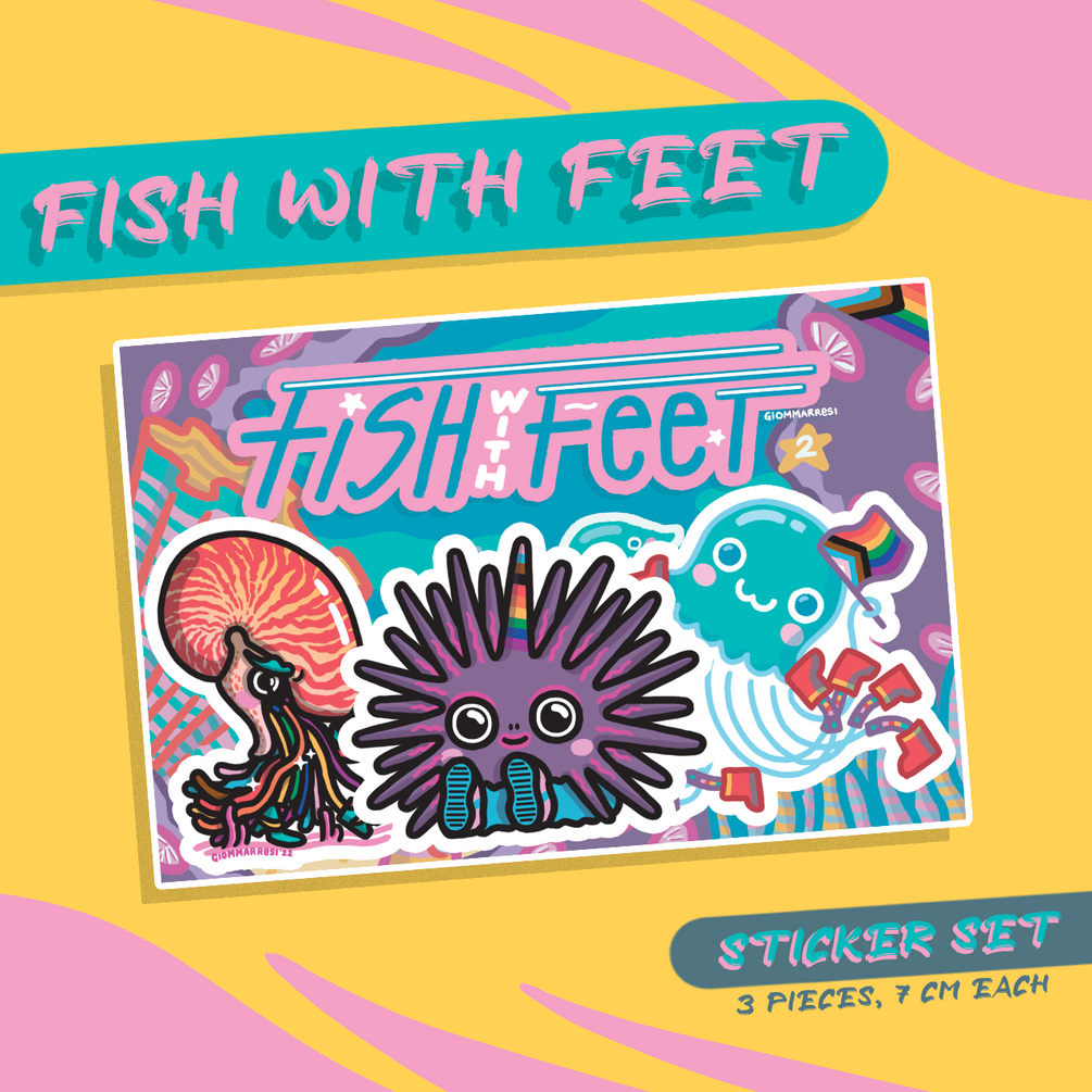 - "FISH with FEET" stickers are a unique and original way to draw attention to the conservation of marine ecosystems. By designing a project that talks about death using a fun, kawaii fluffy style, you can talk to many more people about this issue, for which I think it is right to take a stand.